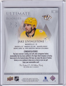 Jake Livingstone Ultimate Rookie Jersey /599 Card #190 2023-24 Upper Deck Ultimate Collection Rookie Card RC Nashville Predators