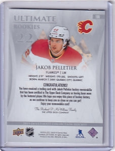 Jakob Pelletier Ultimate Rookie Jersey /599 Card #106 2023-24 Upper Deck Ultimate Collection Rookie Card RC Calgary Flames
