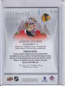 Jaxson Stauber Ultimate Rookie Jersey /599 Card #196 2023-24 Upper Deck Ultimate Collection Rookie Card RC Chicago Blackhawks