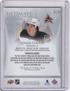Logan Cooley Ultimate Rookie Jersey /349 Card #172 2023-24 Upper Deck Ultimate Collection Rookie Card RC Arizona Coyotes