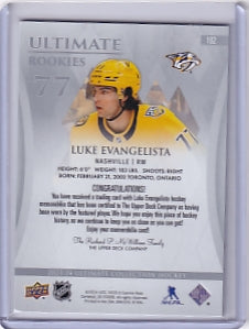 Luke Evangelista Ultimate Rookie Jersey /599 Card #192 2023-24 Upper Deck Ultimate Collection Rookie Card RC Nashville Predators