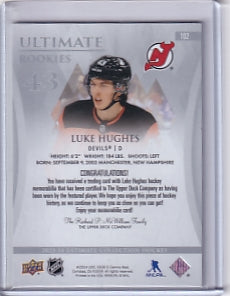 Luke Hughes Ultimate Rookie Jersey /349 Card #102 2023-24 Upper Deck Ultimate Collection Rookie Card RC New Jersey Devils
