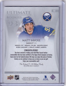 Matt Savoie Ultimate Rookie Jersey /599 Card #191 2023-24 Upper Deck Ultimate Collection Rookie Card RC Buffalo Sabres
