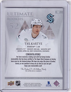 Tye Kartye Ultimate Rookie Jersey /599 Card #197 2023-24 Upper Deck Ultimate Collection Rookie Card RC Seattle Kraken