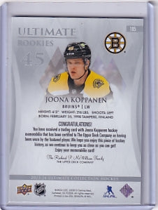 Joona Koppanen Ultimate Rookie Jersey 266/599 Card #185 2023-24 Upper Deck Ultimate Collection Rookie Card RC Boston Bruins