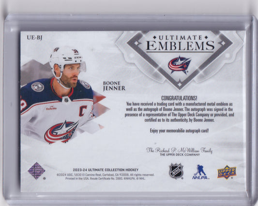 Boone Jenner Ultimate Emblems Auto Card UE-BJ 2023-24 Upper Deck Ultimate Collection Columbus Blue Jackets