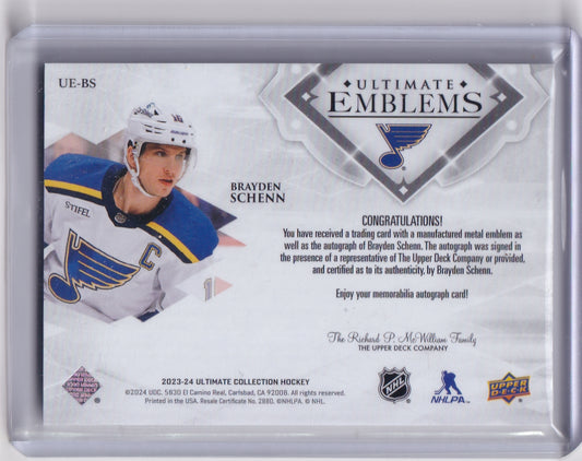 Brayden Schenn Ultimate Emblems Auto Card UE-BS 2023-24 Upper Deck Ultimate Collection St. Louis Blues