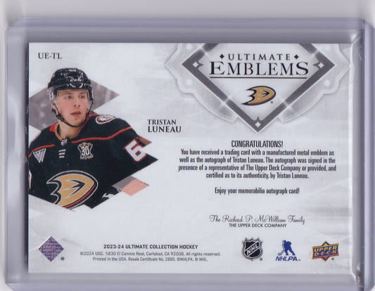 Tristan Luneau Ultimate Emblems Gold Rookie Auto /99 Card UE-TL 2023-24 Upper Deck Ultimate Collection Rookie Card RC Anaheim Ducks