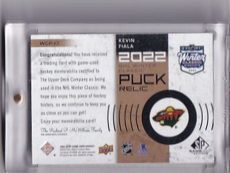 Kevin Fiala 2022 NHL Winter Classic Puck Relic Card WCP-KF 2022-23 Upper Deck SP Game Used Minnesota Wild