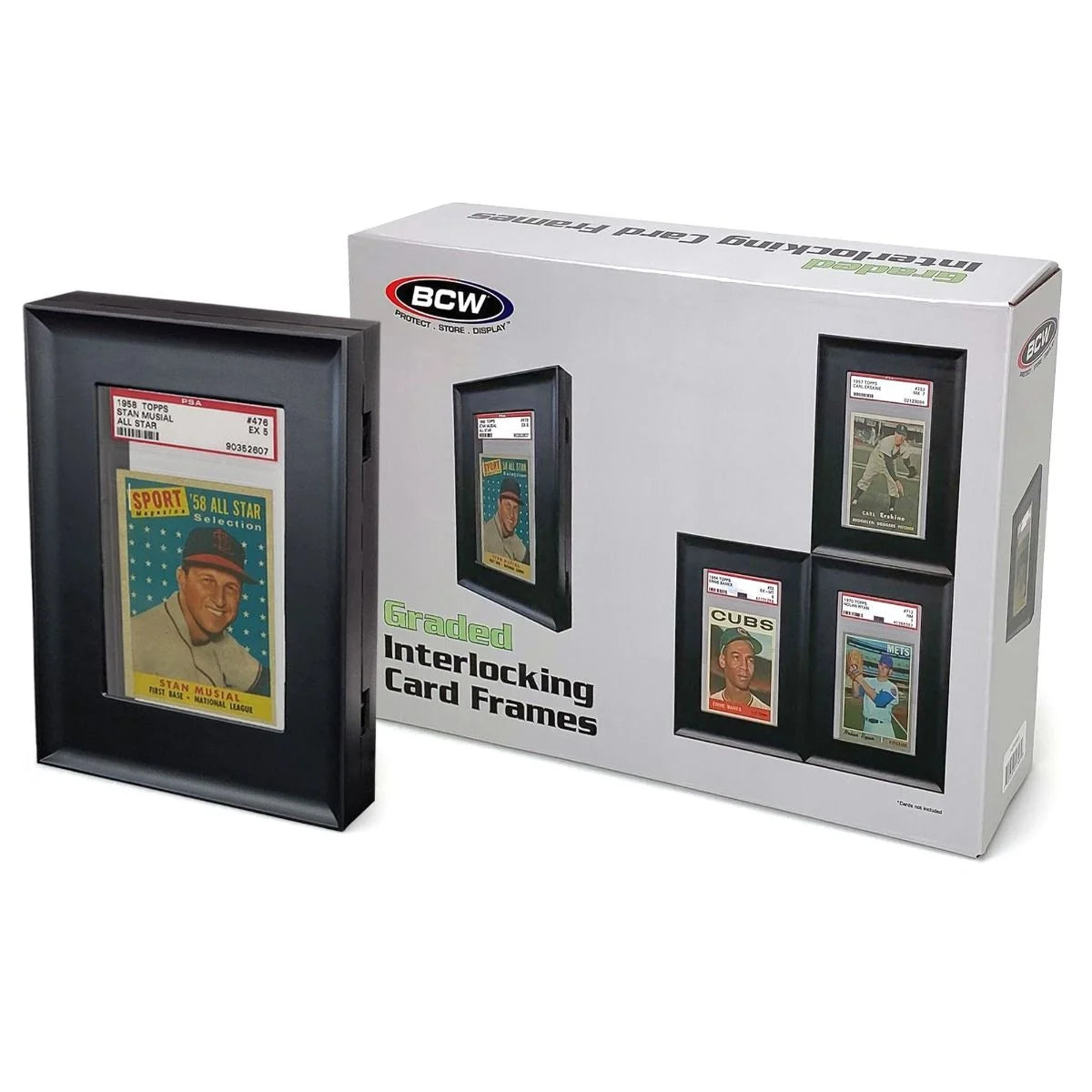 - Frames are sized to hold graded card slabs up to 3 ⁷⁄₁₆" x 5 ½"