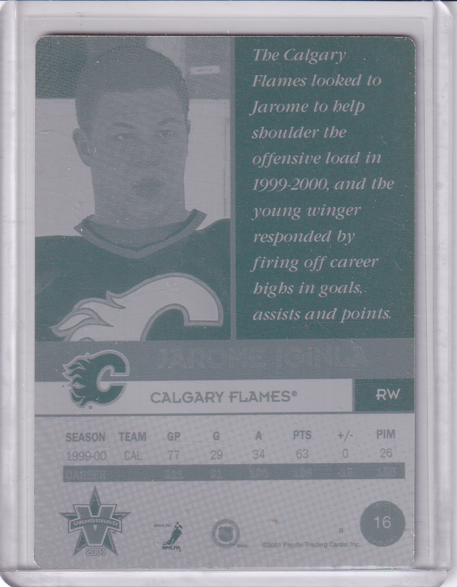 JAROME IGINLA 2000-01 Pacific Vanguard Back Printing Plate Calgary Flames #16 1/1