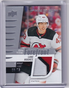 Luke Hughes On The Forefront Rookie Patch 06/75 Card OFR-LH 2023-24 Upper Deck Premier Rookie Card RC New Jersey Devils
