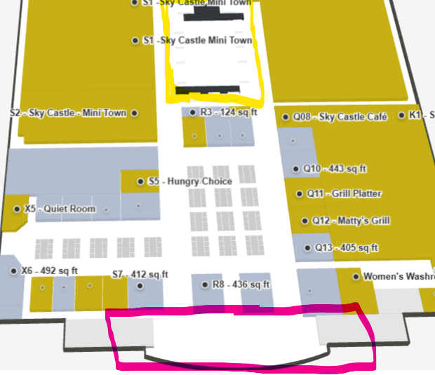 We have got permission to add a section behind the food court by the large Glass Wall, please see Picture( area is where i put the red box). spots will be very limited and we will need everyone to promote the area.