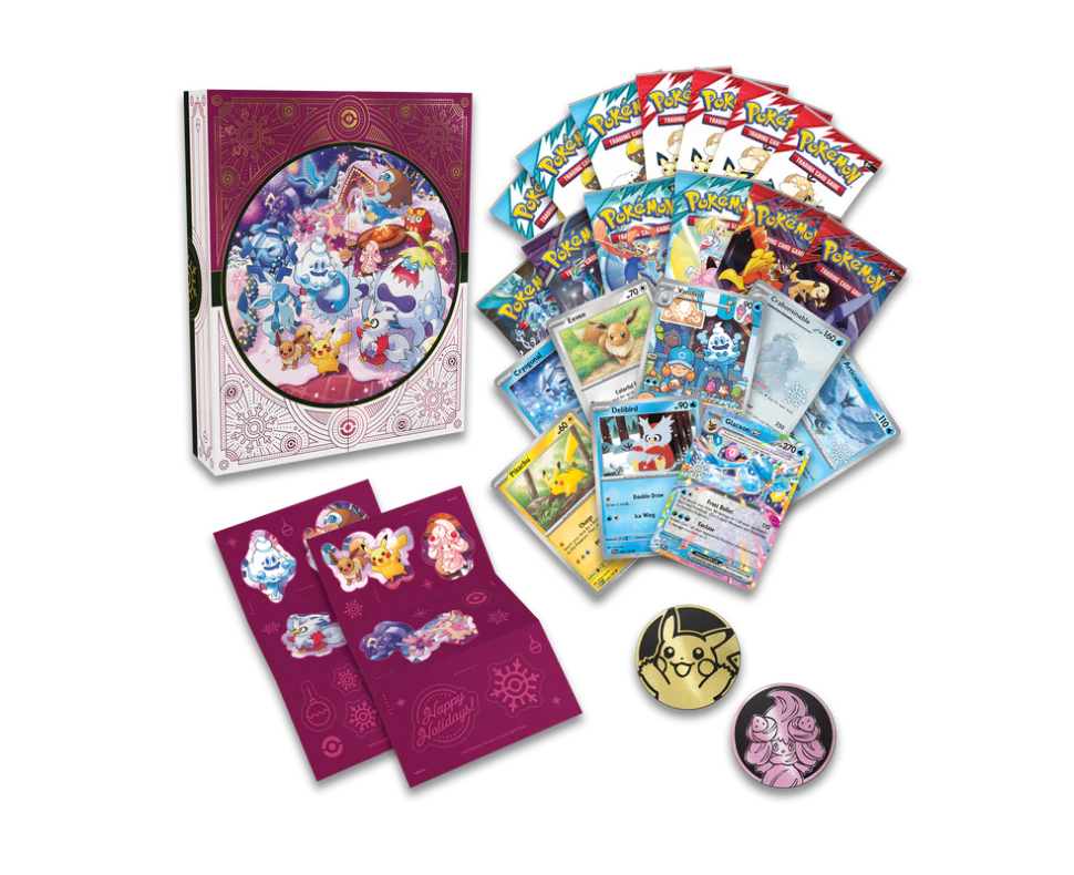 Celebrate the season with 25 days of surprises in the Pokémon TCG: Holiday Calendar! From special foil cards to booster packs and more, there’s a different Pokémon goodie to open every day.